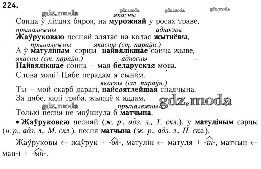 ГДЗ решение к заданию № 224 Белоруская мова 6 класс Красней В.П. Национальный институт образования 2015 ФГОС бесплатно на гдз.мода!