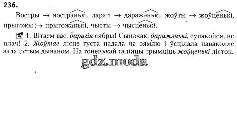 ГДЗ решение к заданию № 236 Белоруская мова 6 класс Красней В.П. Национальный институт образования 2015 ФГОС бесплатно на гдз.мода!