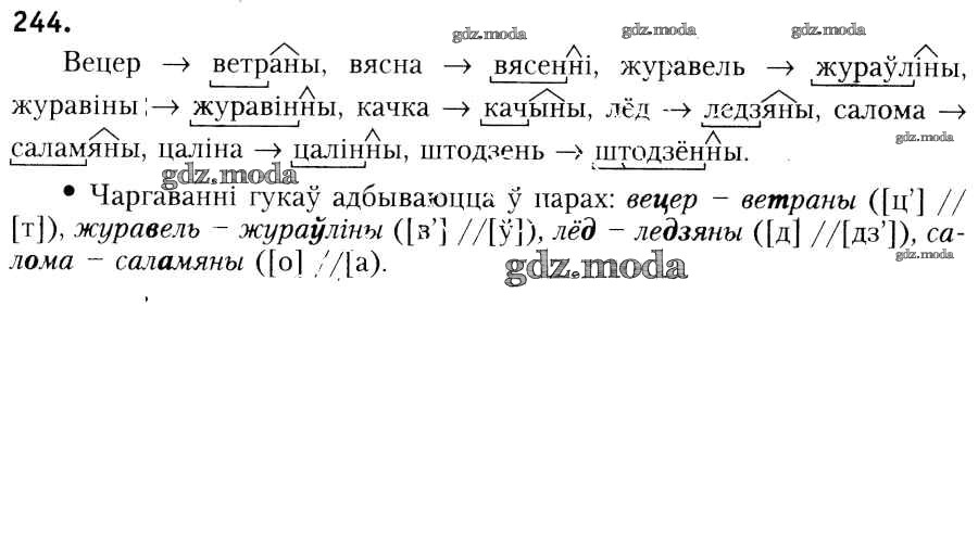 ГДЗ решение к заданию № 244 Белоруская мова 6 класс Красней В.П. Национальный институт образования 2015 ФГОС бесплатно на гдз.мода!