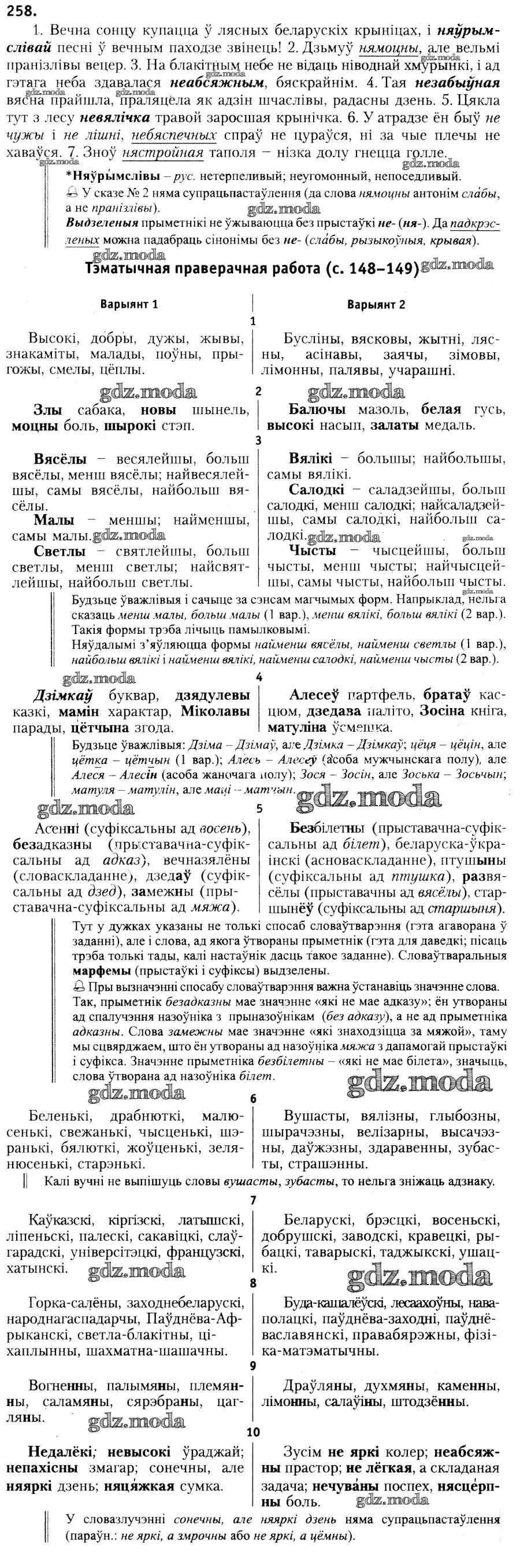 ГДЗ решение к заданию № 258 Белоруская мова 6 класс Красней В.П. Национальный институт образования 2015 ФГОС бесплатно на гдз.мода!