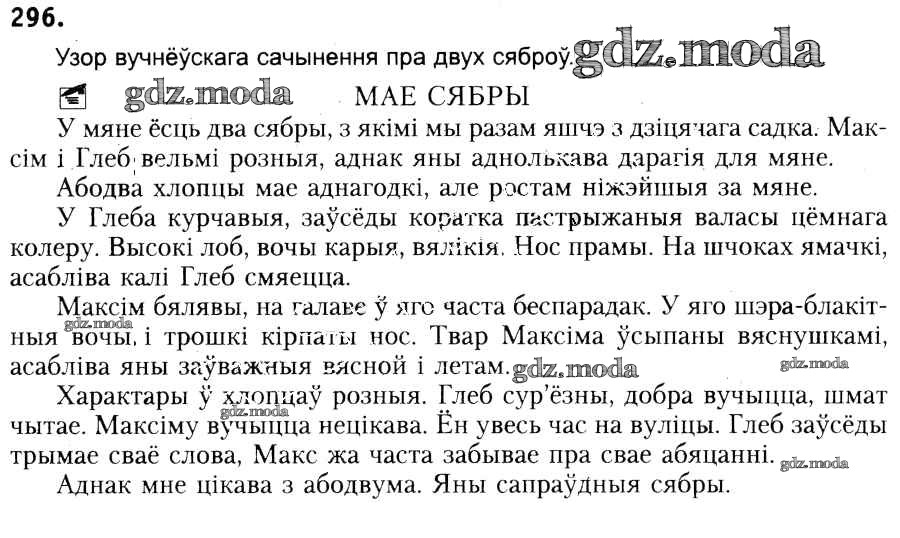 ГДЗ решение к заданию № 296 Белоруская мова 6 класс Красней В.П. Национальный институт образования 2015 ФГОС бесплатно на гдз.мода!