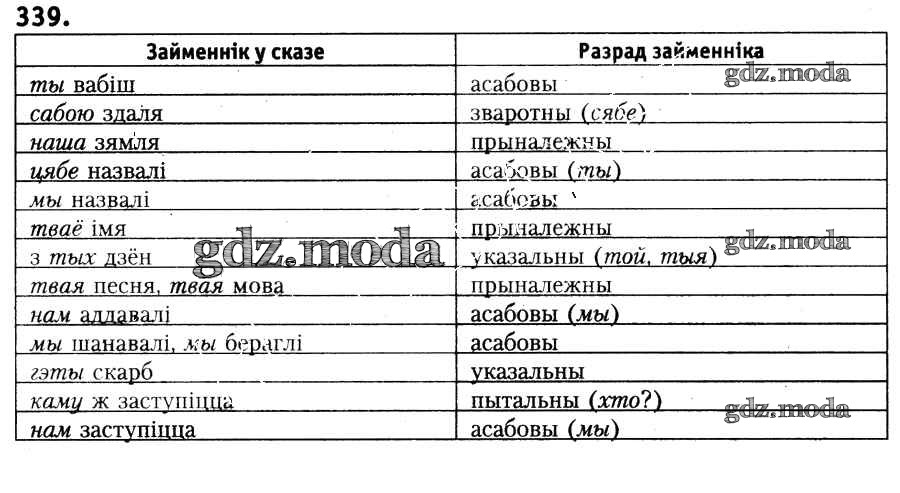 ГДЗ решение к заданию № 339 Белоруская мова 6 класс Красней В.П. Национальный институт образования 2015 ФГОС бесплатно на гдз.мода!