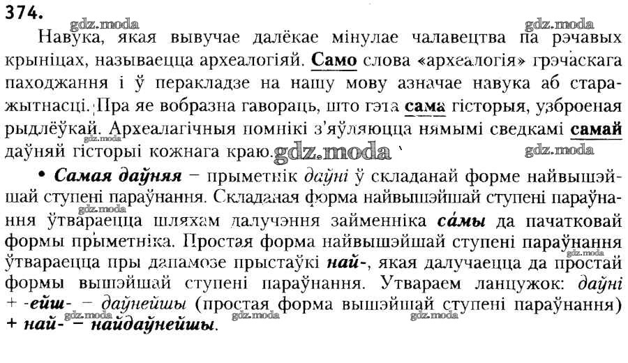 ГДЗ решение к заданию № 374 Белоруская мова 6 класс Красней В.П. Национальный институт образования 2015 ФГОС бесплатно на гдз.мода!