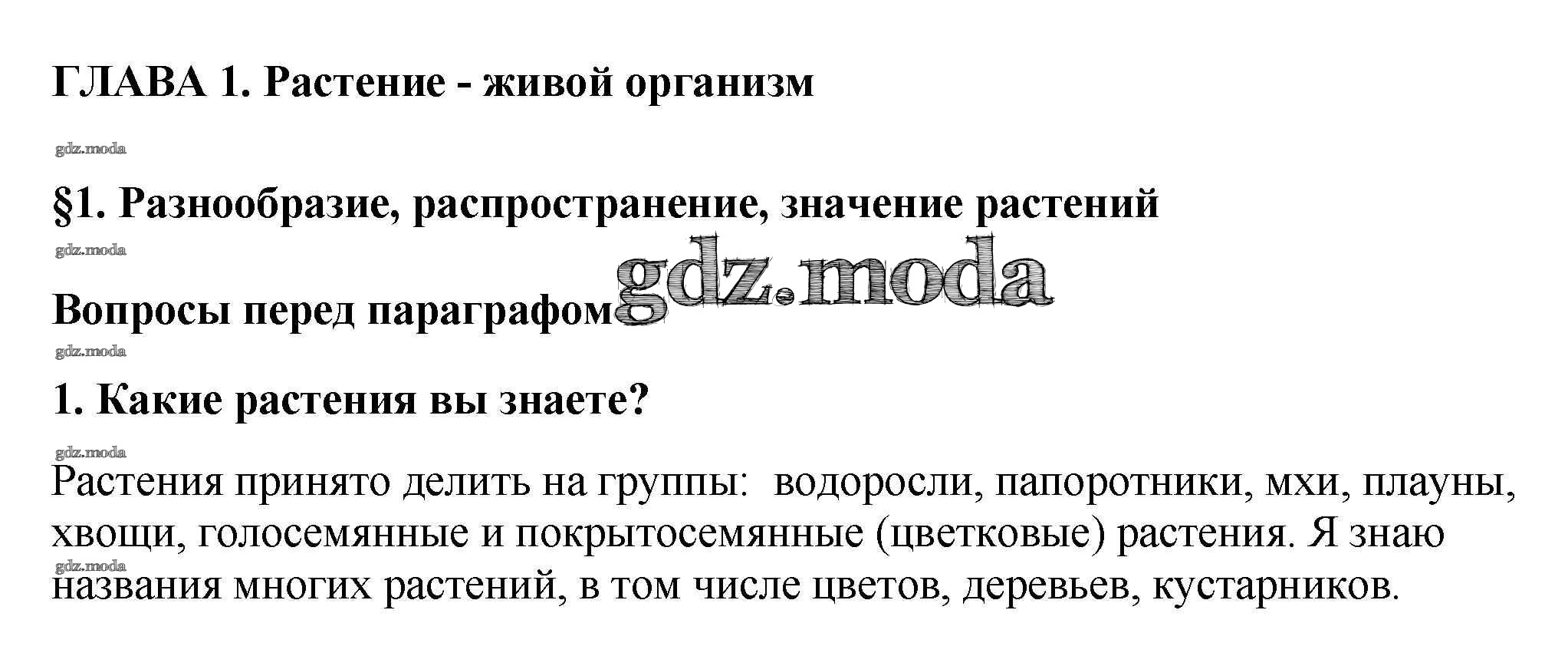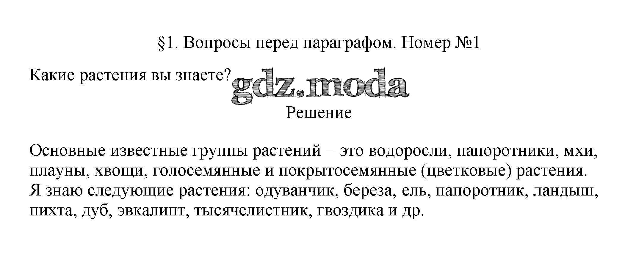 ГДЗ решение к заданию № 1 Биология 6 класс Пасечник В.В. Дрофа 2020 Линейный курс ФГОС бесплатно на гдз.мода!
