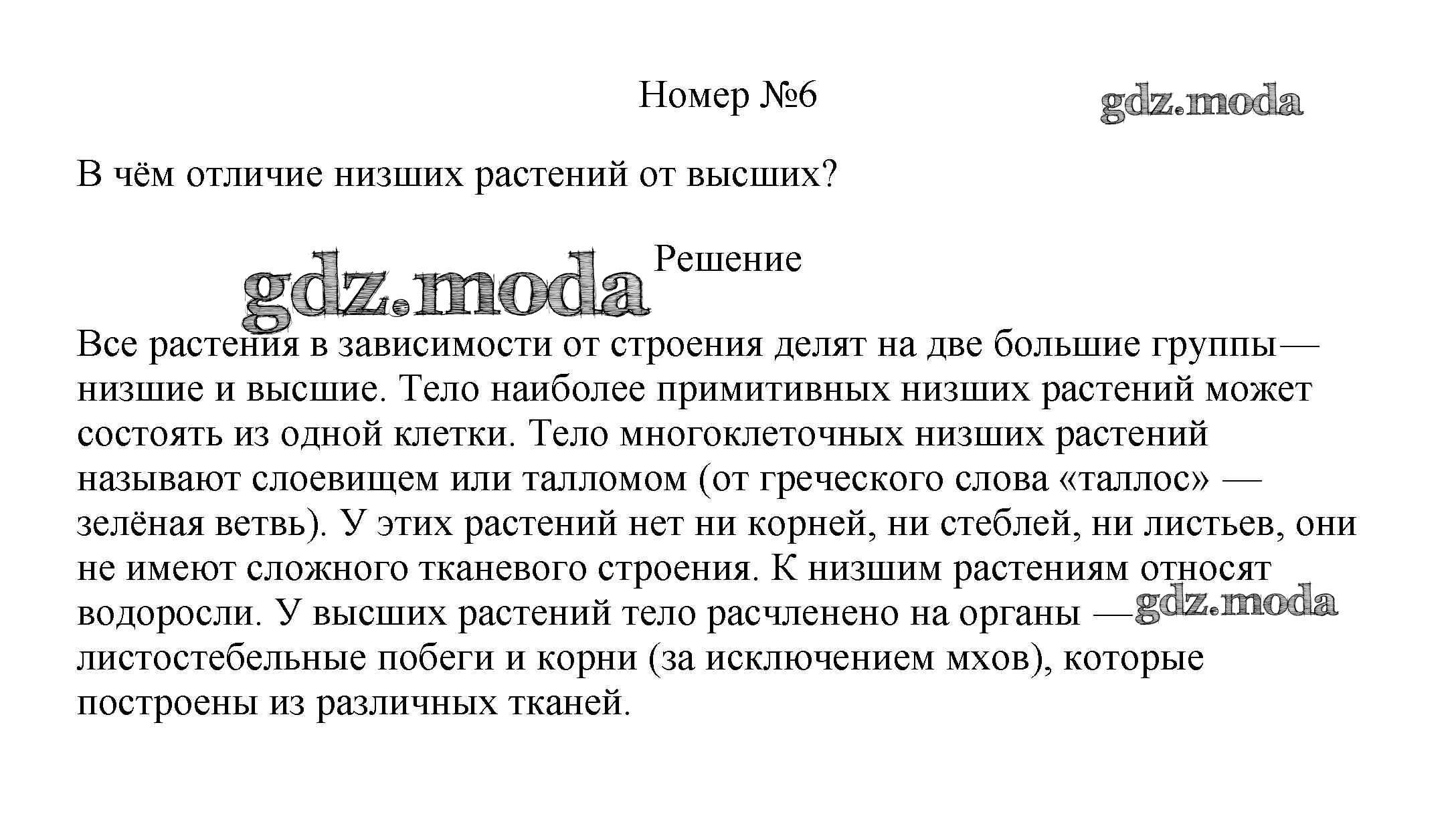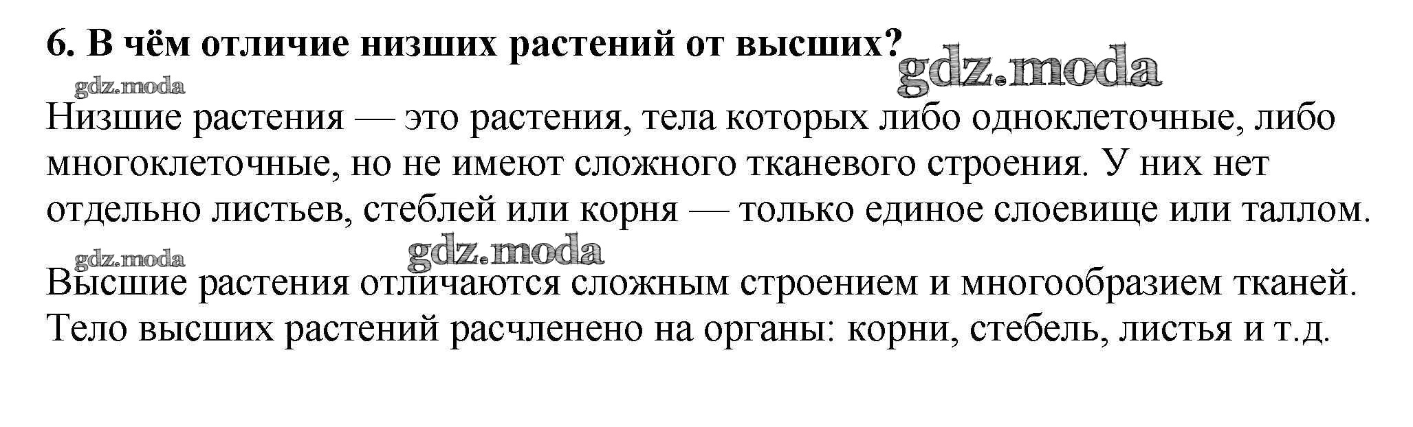ГДЗ решение к заданию № 6 Биология 6 класс Пасечник В.В. Дрофа 2020 Линейный курс ФГОС бесплатно на гдз.мода!