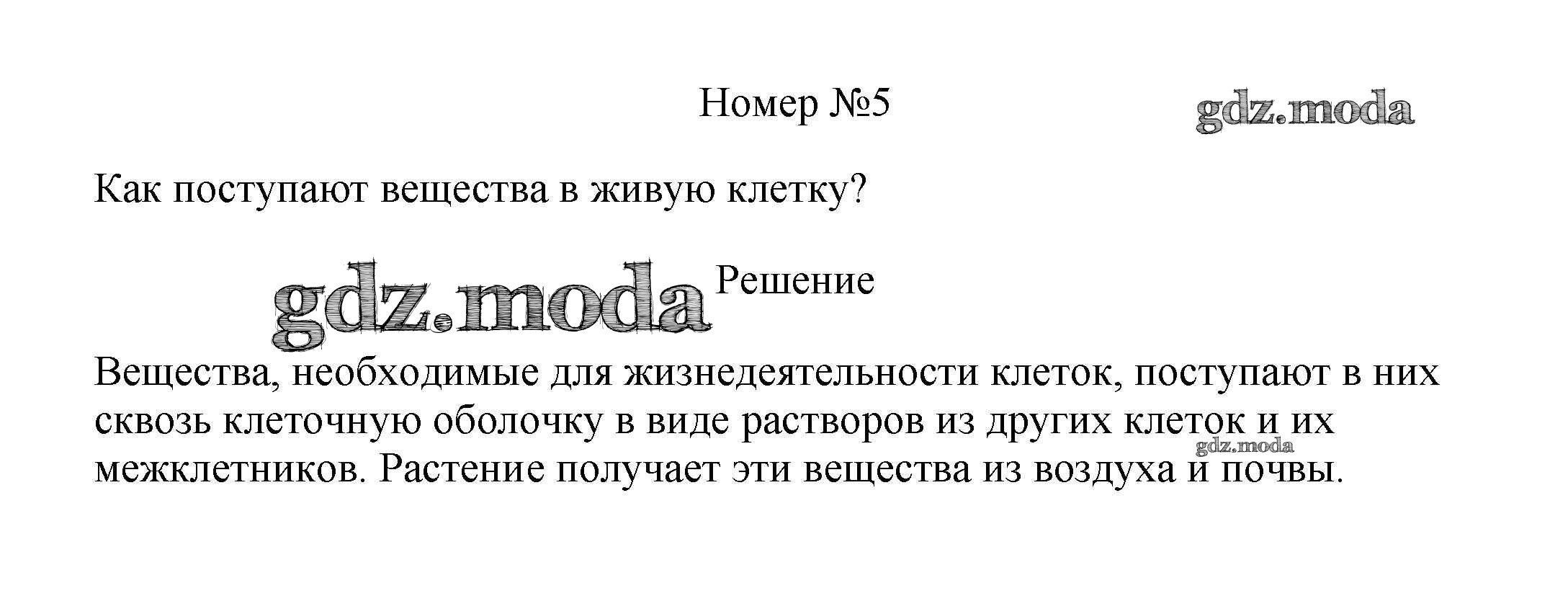 ГДЗ решение к заданию № 5 Биология 6 класс Пасечник В.В. Дрофа 2020 Линейный курс ФГОС бесплатно на гдз.мода!