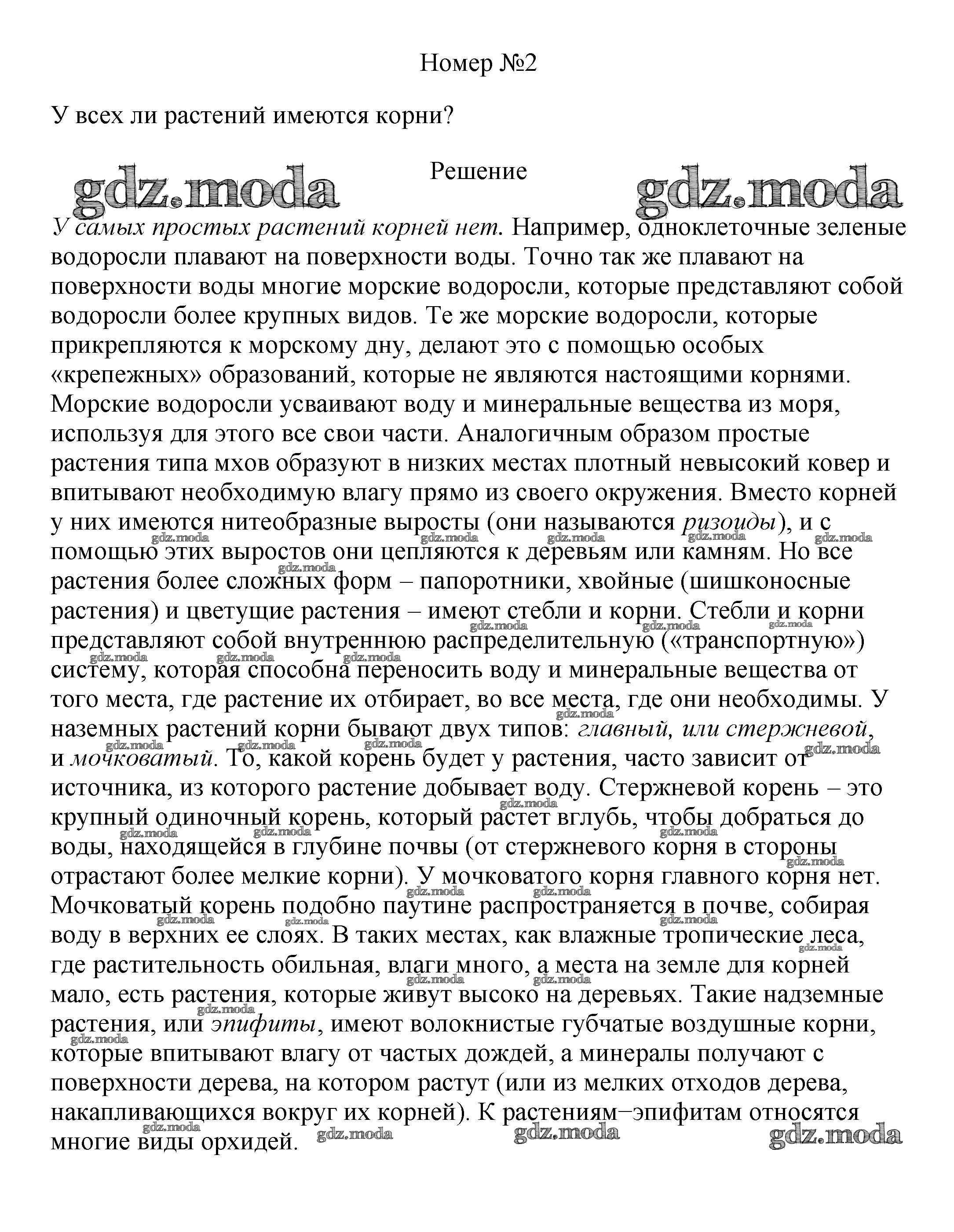 ГДЗ решение к заданию № 2 Биология 6 класс Пасечник В.В. Дрофа 2020 Линейный курс ФГОС бесплатно на гдз.мода!