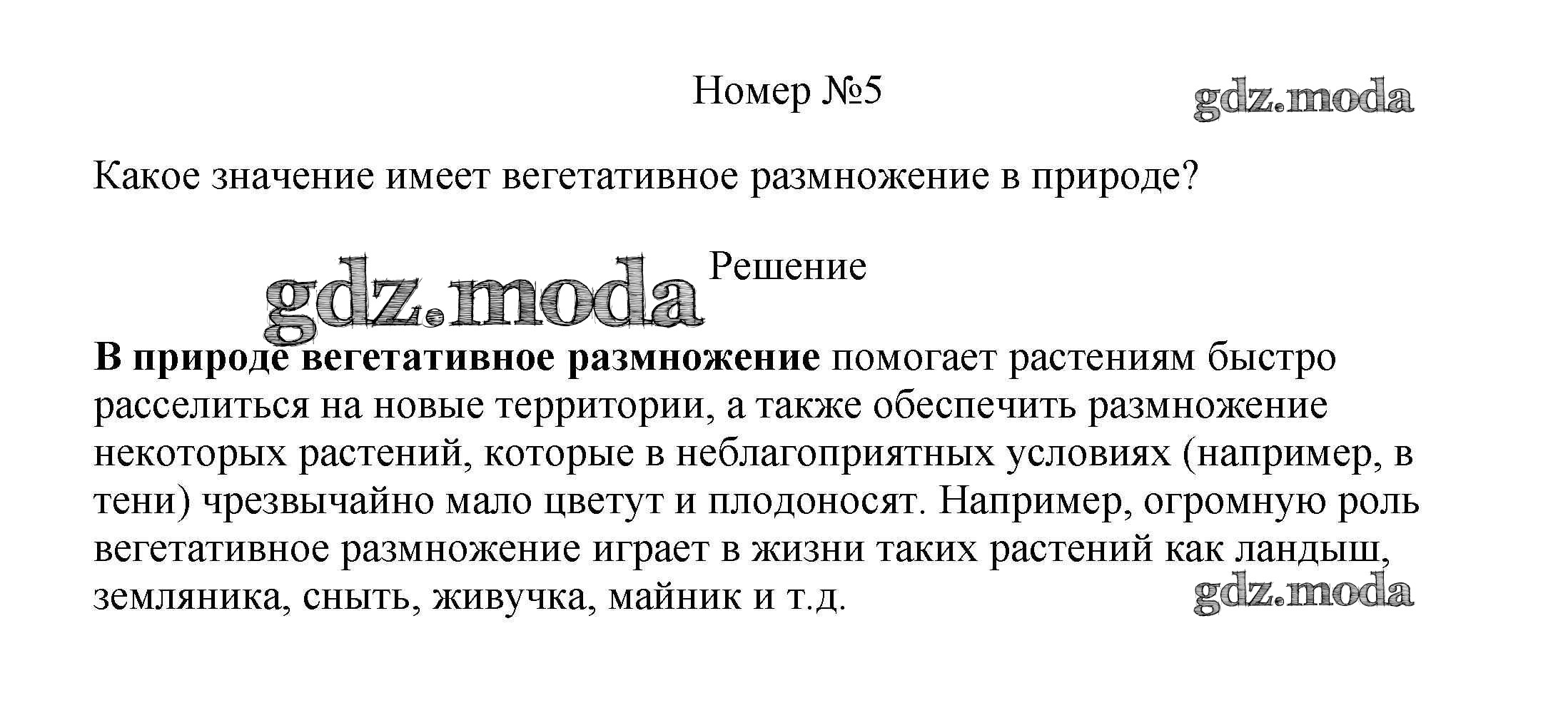 ГДЗ решение к заданию № 5 Биология 6 класс Пасечник В.В. Дрофа 2020 Линейный курс ФГОС бесплатно на гдз.мода!