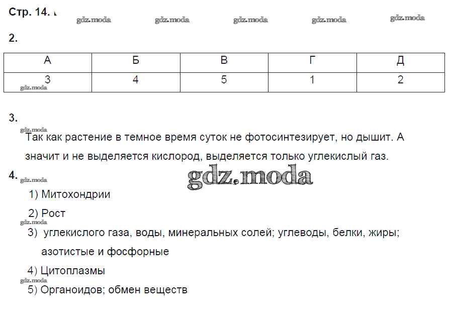 ГДЗ решение к заданию № 14 Биология 6 класс рабочая тетрадь Исаева Т.А. Русское слово 2017 ФГОС бесплатно на гдз.мода!
