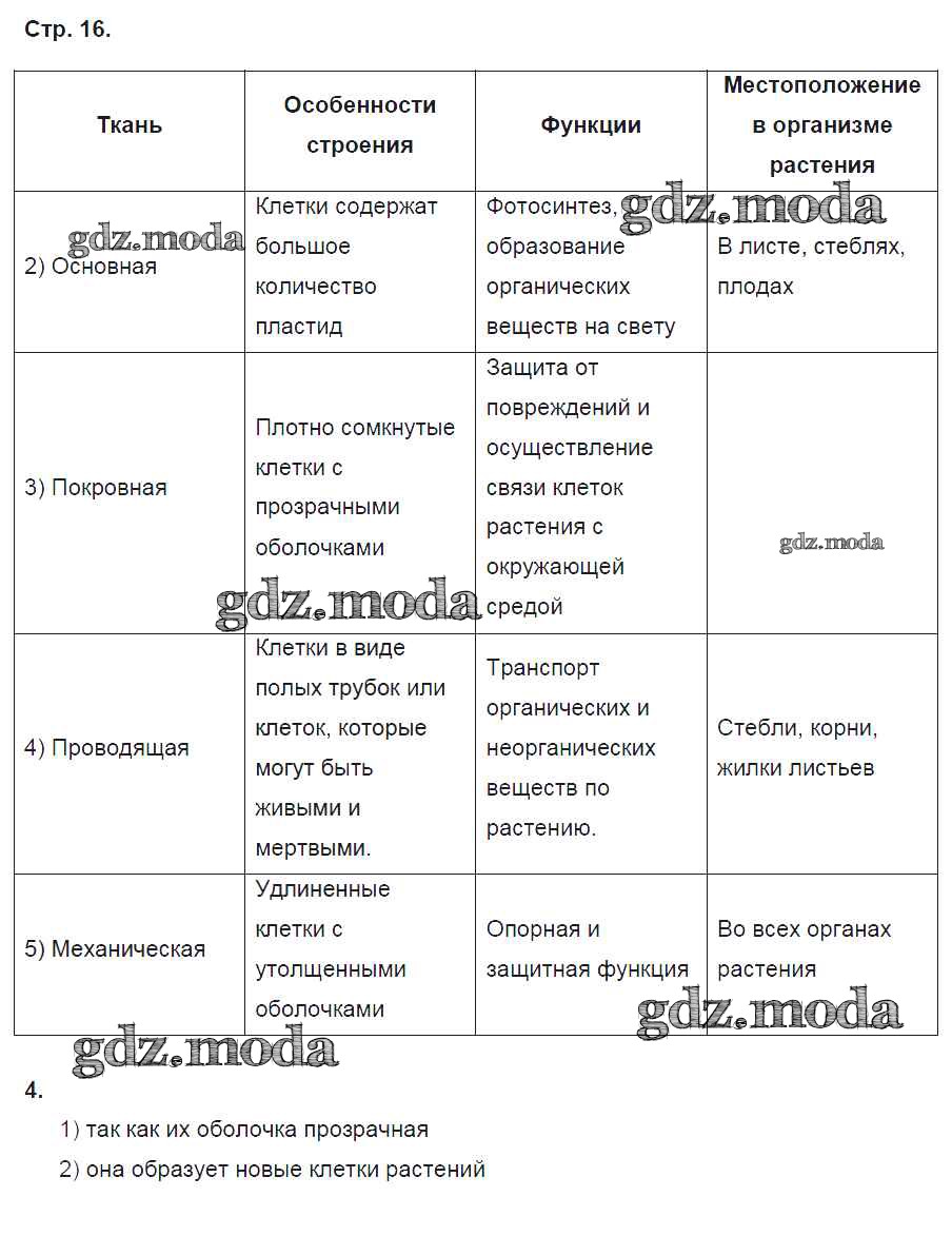 ГДЗ решение к заданию № 16 Биология 6 класс рабочая тетрадь Исаева Т.А. Русское слово 2017 ФГОС бесплатно на гдз.мода!