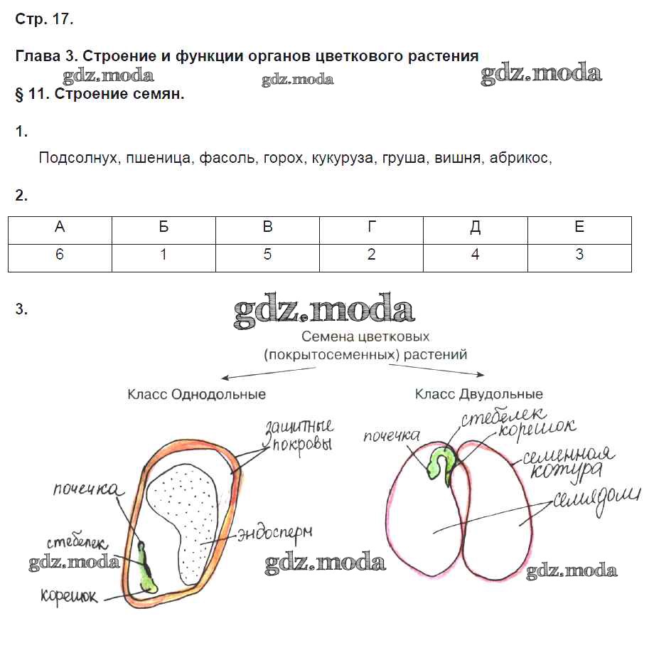 ГДЗ решение к заданию № 17 Биология 6 класс рабочая тетрадь Исаева Т.А. Русское слово 2017 ФГОС бесплатно на гдз.мода!