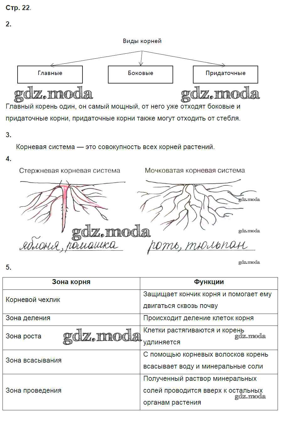 ГДЗ решение к заданию № 22 Биология 6 класс рабочая тетрадь Исаева Т.А. Русское слово 2017 ФГОС бесплатно на гдз.мода!