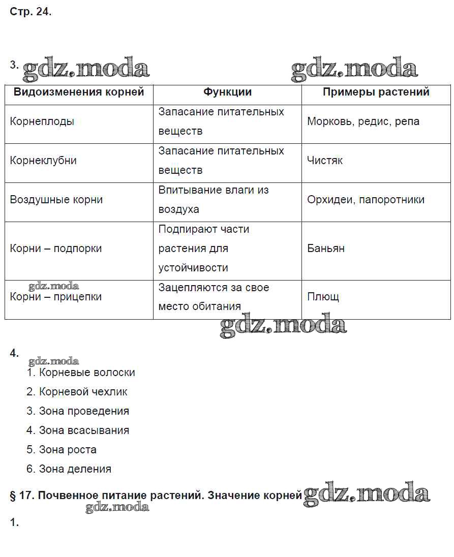 ГДЗ решение к заданию № 24 Биология 6 класс рабочая тетрадь Исаева Т.А. Русское слово 2017 ФГОС бесплатно на гдз.мода!