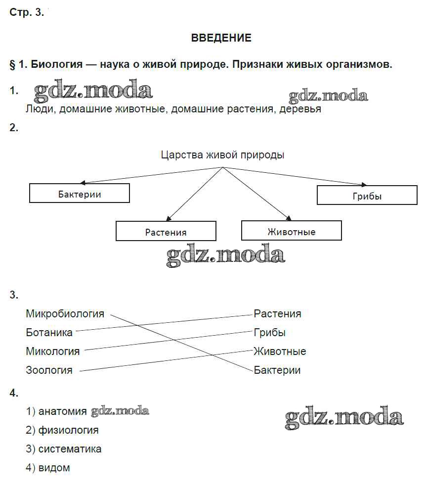 ГДЗ решение к заданию № 3 Биология 6 класс рабочая тетрадь Исаева Т.А. Русское слово 2017 ФГОС бесплатно на гдз.мода!