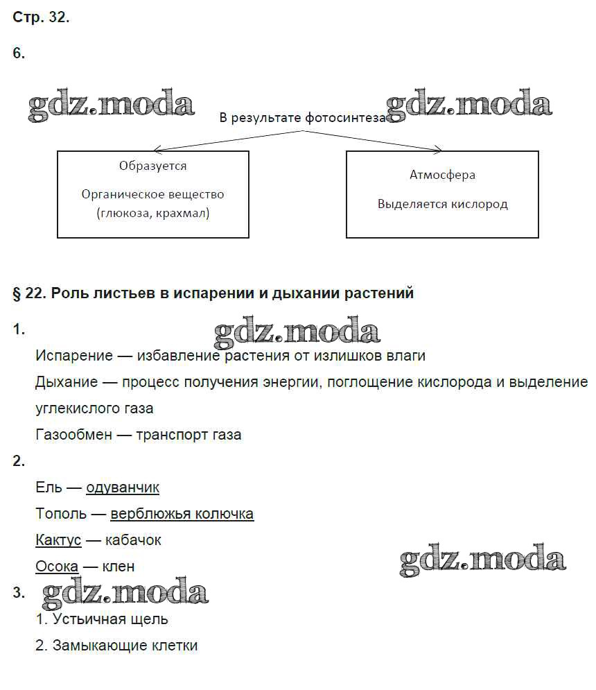 ГДЗ решение к заданию № 32 Биология 6 класс рабочая тетрадь Исаева Т.А. Русское слово 2017 ФГОС бесплатно на гдз.мода!