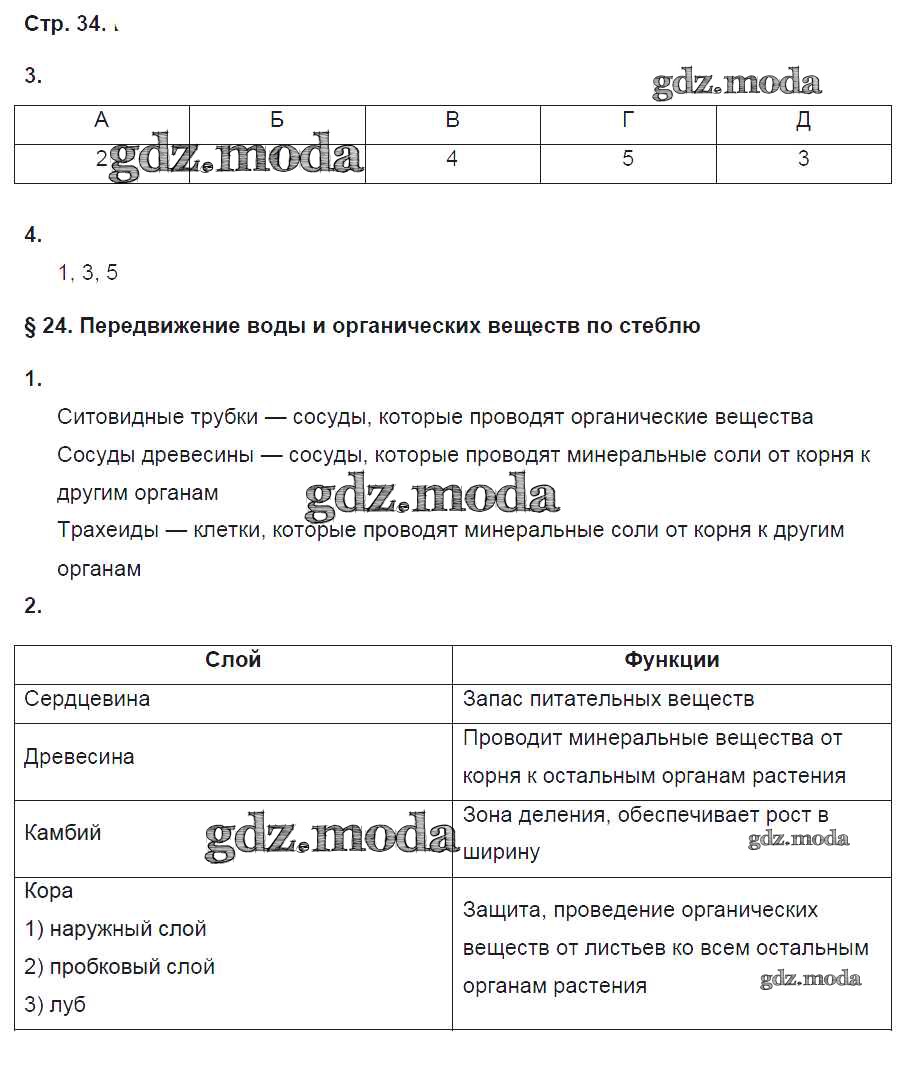 ГДЗ решение к заданию № 34 Биология 6 класс рабочая тетрадь Исаева Т.А. Русское слово 2017 ФГОС бесплатно на гдз.мода!