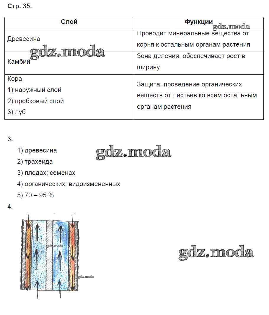 ГДЗ решение к заданию № 35 Биология 6 класс рабочая тетрадь Исаева Т.А. Русское слово 2017 ФГОС бесплатно на гдз.мода!