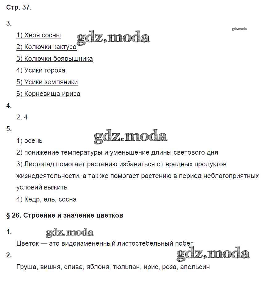 ГДЗ решение к заданию № 37 Биология 6 класс рабочая тетрадь Исаева Т.А. Русское слово 2017 ФГОС бесплатно на гдз.мода!