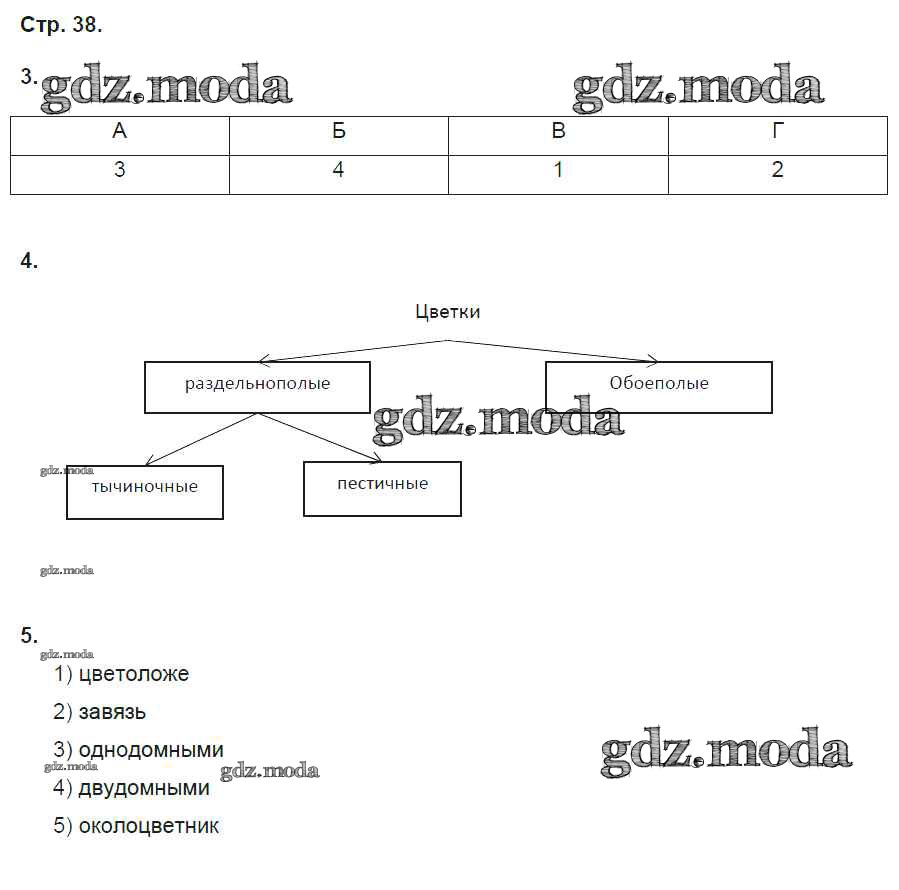 ГДЗ решение к заданию № 38 Биология 6 класс рабочая тетрадь Исаева Т.А. Русское слово 2017 ФГОС бесплатно на гдз.мода!