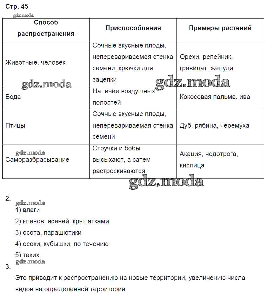 ГДЗ решение к заданию № 45 Биология 6 класс рабочая тетрадь Исаева Т.А. Русское слово 2017 ФГОС бесплатно на гдз.мода!