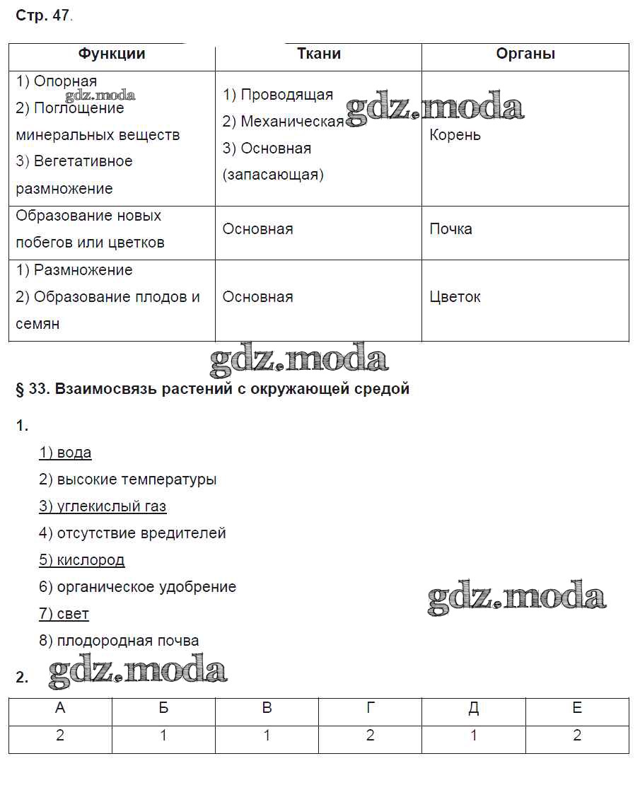 ГДЗ решение к заданию № 47 Биология 6 класс рабочая тетрадь Исаева Т.А. Русское слово 2017 ФГОС бесплатно на гдз.мода!