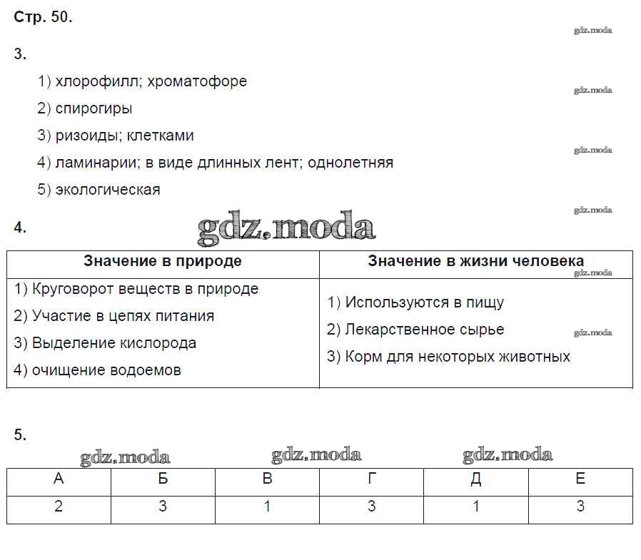 ГДЗ решение к заданию № 50 Биология 6 класс рабочая тетрадь Исаева Т.А. Русское слово 2017 ФГОС бесплатно на гдз.мода!