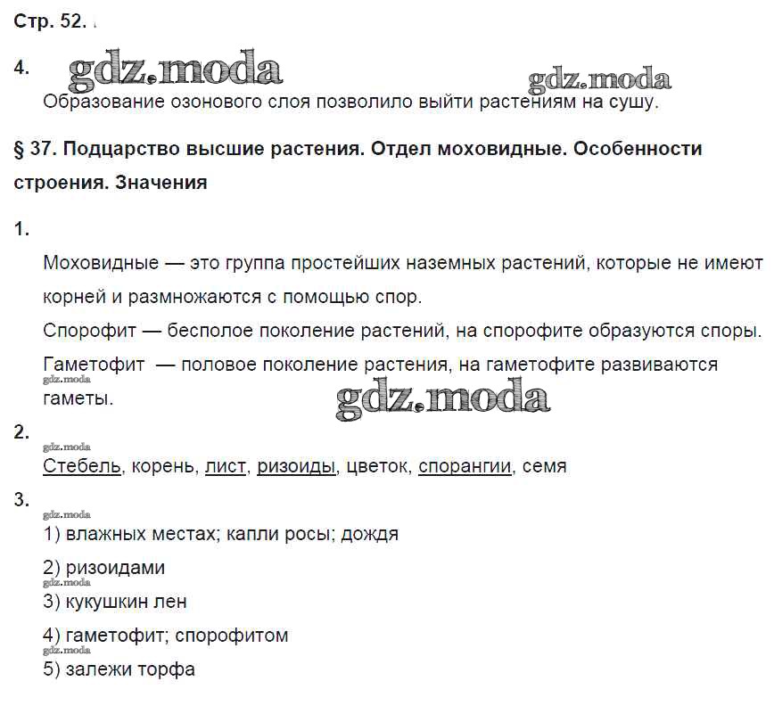 ГДЗ решение к заданию № 52 Биология 6 класс рабочая тетрадь Исаева Т.А. Русское слово 2017 ФГОС бесплатно на гдз.мода!