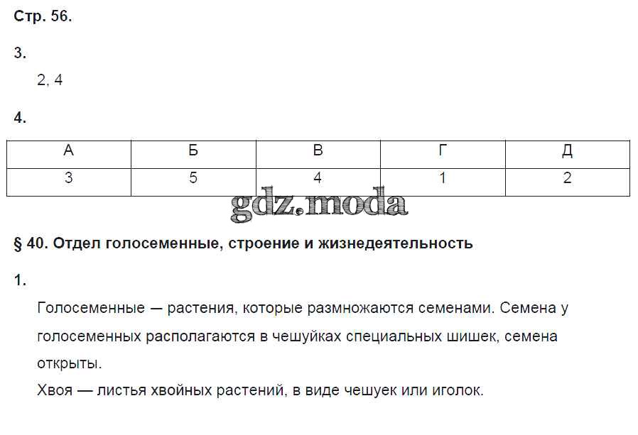 ГДЗ решение к заданию № 56 Биология 6 класс рабочая тетрадь Исаева Т.А. Русское слово 2017 ФГОС бесплатно на гдз.мода!
