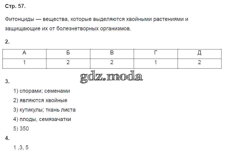 ГДЗ решение к заданию № 57 Биология 6 класс рабочая тетрадь Исаева Т.А. Русское слово 2017 ФГОС бесплатно на гдз.мода!