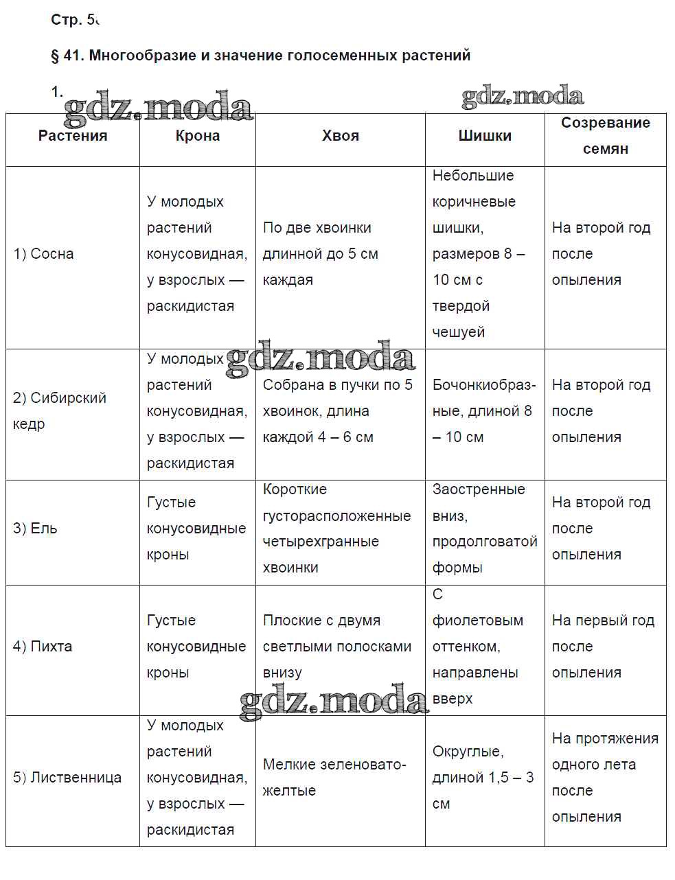 ГДЗ решение к заданию № 58 Биология 6 класс рабочая тетрадь Исаева Т.А. Русское слово 2017 ФГОС бесплатно на гдз.мода!