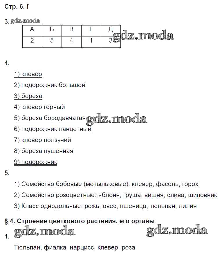 ГДЗ решение к заданию № 6 Биология 6 класс рабочая тетрадь Исаева Т.А. Русское слово 2017 ФГОС бесплатно на гдз.мода!