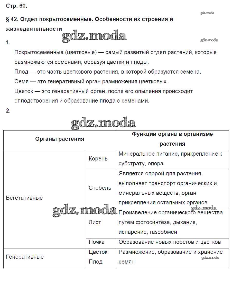 ГДЗ решение к заданию № 60 Биология 6 класс рабочая тетрадь Исаева Т.А. Русское слово 2017 ФГОС бесплатно на гдз.мода!
