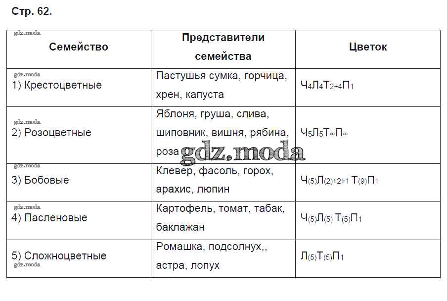 ГДЗ решение к заданию № 62 Биология 6 класс рабочая тетрадь Исаева Т.А. Русское слово 2017 ФГОС бесплатно на гдз.мода!