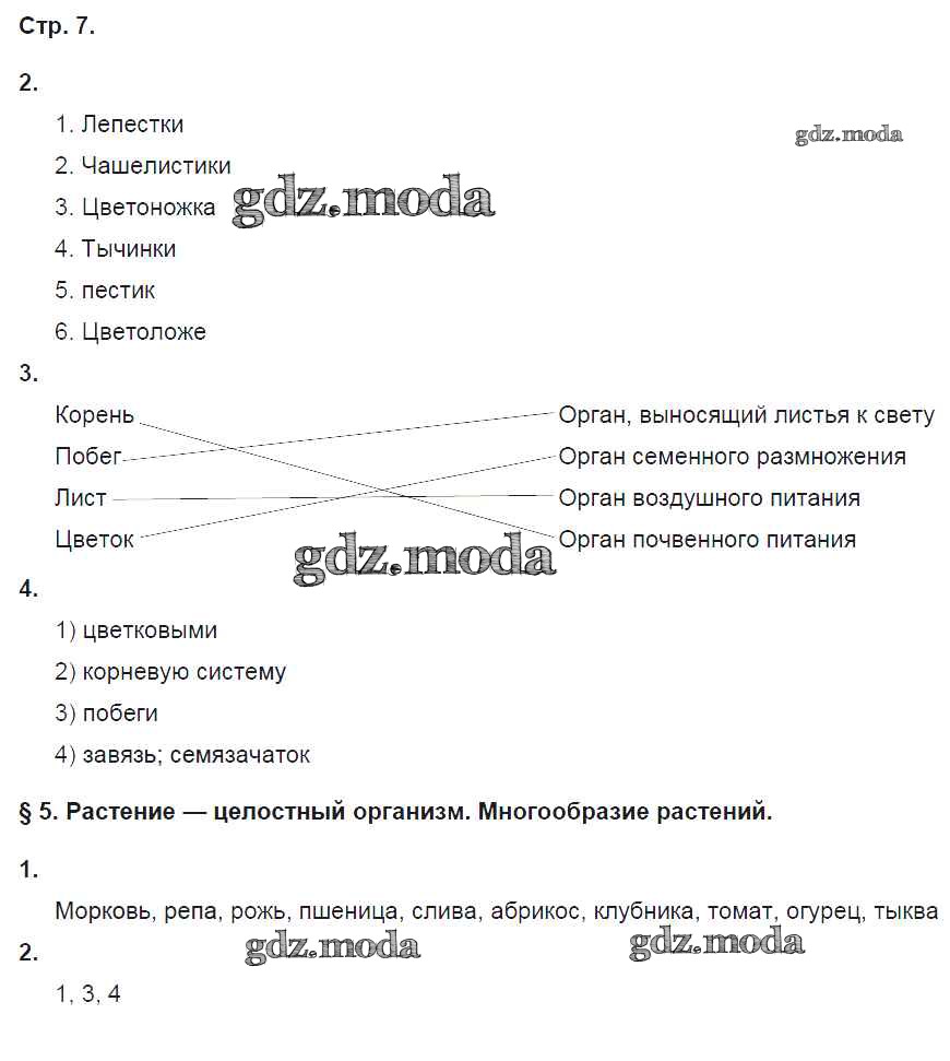 ГДЗ решение к заданию № 7 Биология 6 класс рабочая тетрадь Исаева Т.А. Русское слово 2017 ФГОС бесплатно на гдз.мода!