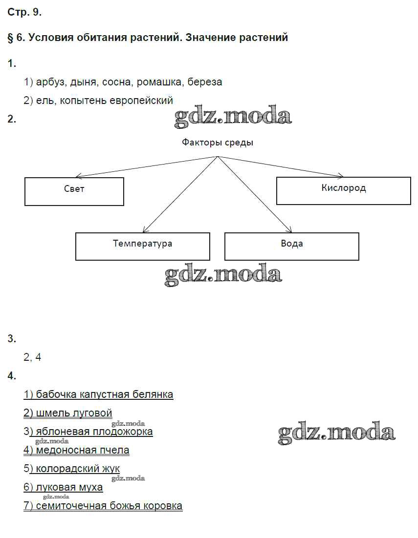 ГДЗ решение к заданию № 9 Биология 6 класс рабочая тетрадь Исаева Т.А. Русское слово 2017 ФГОС бесплатно на гдз.мода!