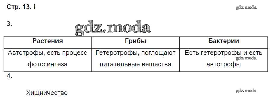 ГДЗ решение к заданию № 13 Биология 6 класс рабочая тетрадь Пасечник В.В. Просвещение 2018 ФГОС бесплатно на гдз.мода!