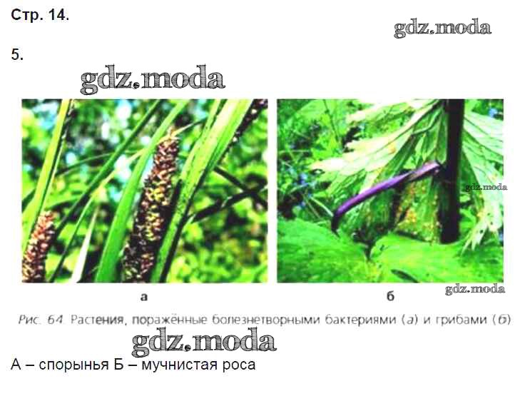 ГДЗ решение к заданию № 14 Биология 6 класс рабочая тетрадь Пасечник В.В. Просвещение 2018 ФГОС бесплатно на гдз.мода!