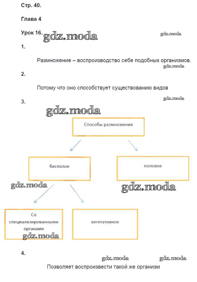 ГДЗ решение к заданию № 40 Биология 6 класс рабочая тетрадь Пасечник В.В. Просвещение 2018 ФГОС бесплатно на гдз.мода!