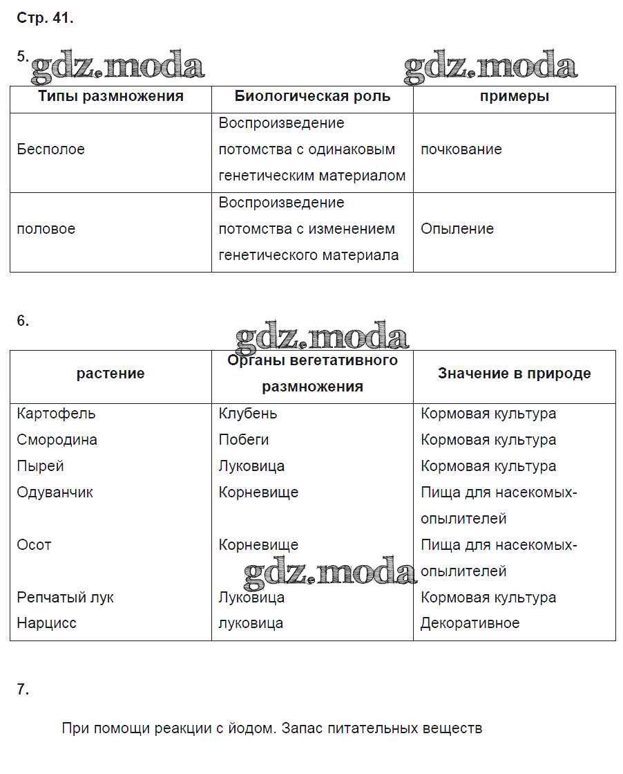 ГДЗ решение к заданию № 41 Биология 6 класс рабочая тетрадь Пасечник В.В. Просвещение 2018 ФГОС бесплатно на гдз.мода!
