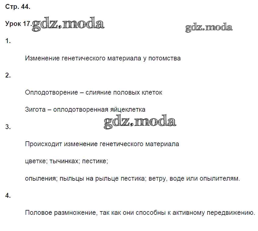 ГДЗ решение к заданию № 44 Биология 6 класс рабочая тетрадь Пасечник В.В. Просвещение 2018 ФГОС бесплатно на гдз.мода!