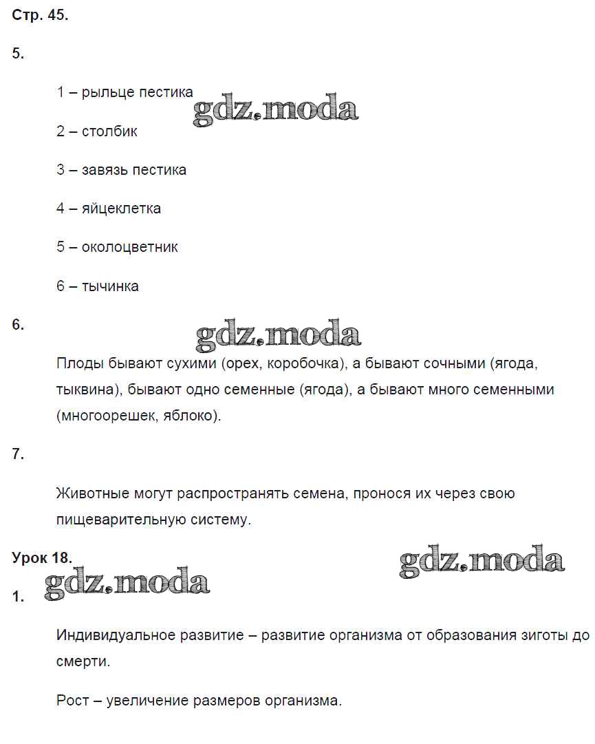 ГДЗ решение к заданию № 45 Биология 6 класс рабочая тетрадь Пасечник В.В. Просвещение 2018 ФГОС бесплатно на гдз.мода!