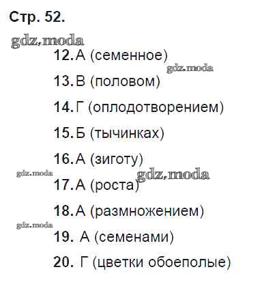 ГДЗ решение к заданию № 52 Биология 6 класс рабочая тетрадь Пасечник В.В. Просвещение 2018 ФГОС бесплатно на гдз.мода!