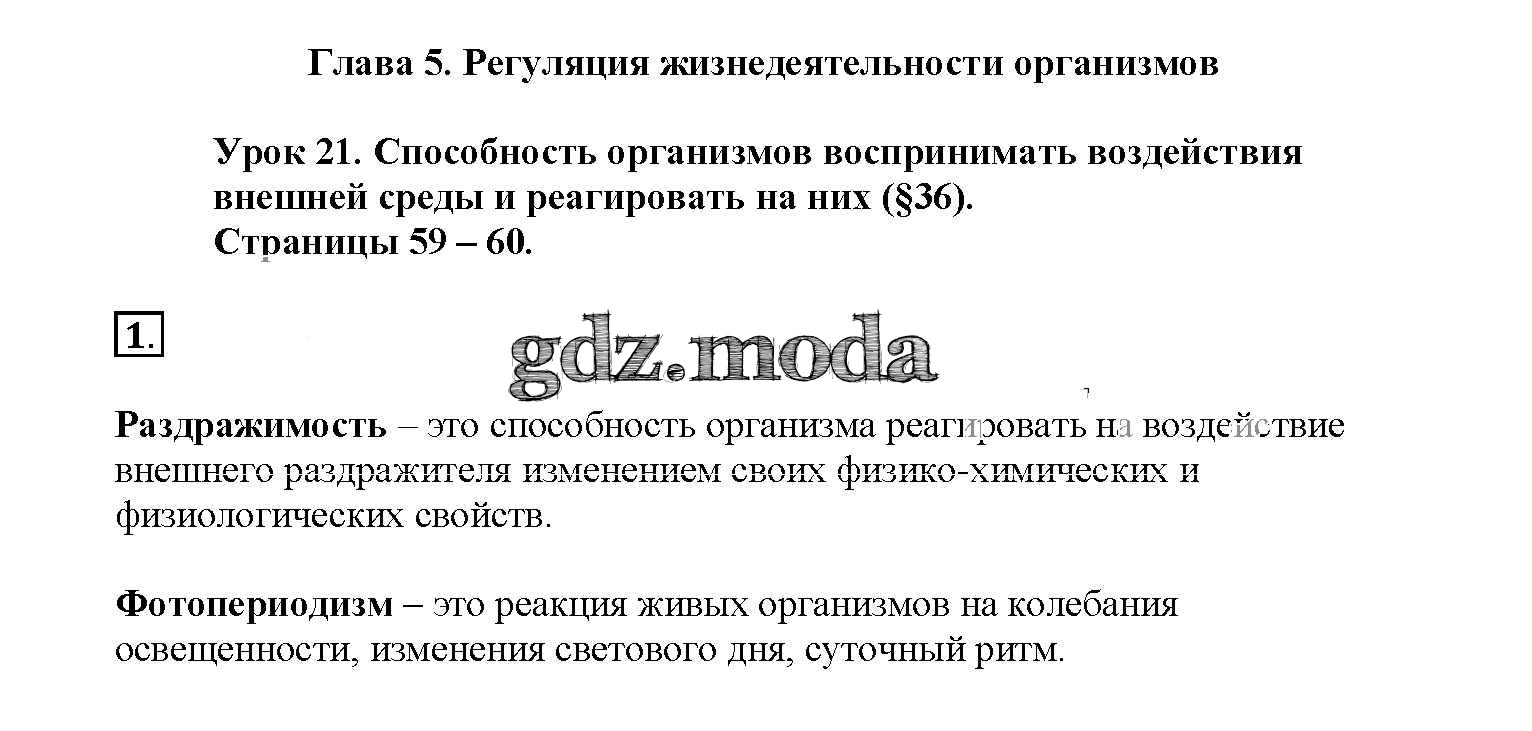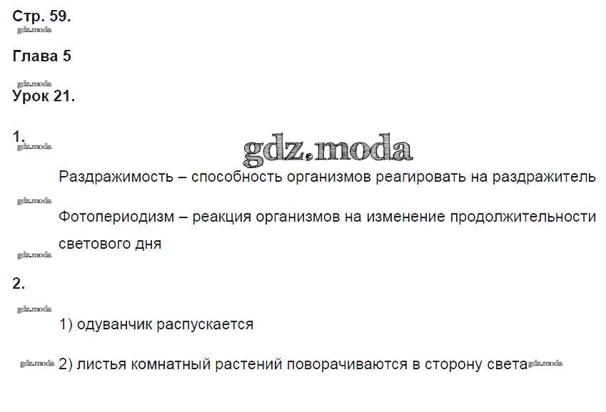 ГДЗ решение к заданию № 59 Биология 6 класс рабочая тетрадь Пасечник В.В. Просвещение 2018 ФГОС бесплатно на гдз.мода!