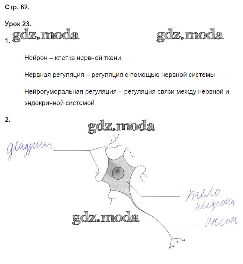 ГДЗ решение к заданию № 62 Биология 6 класс рабочая тетрадь Пасечник В.В. Просвещение 2018 ФГОС бесплатно на гдз.мода!
