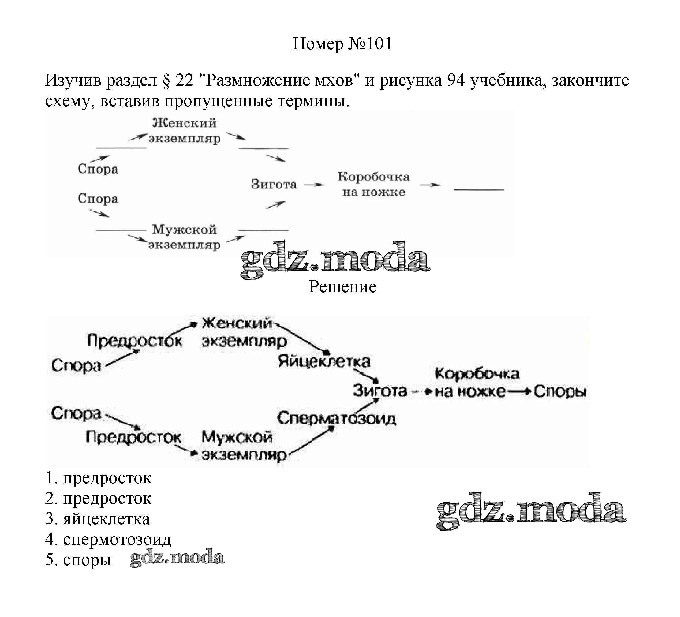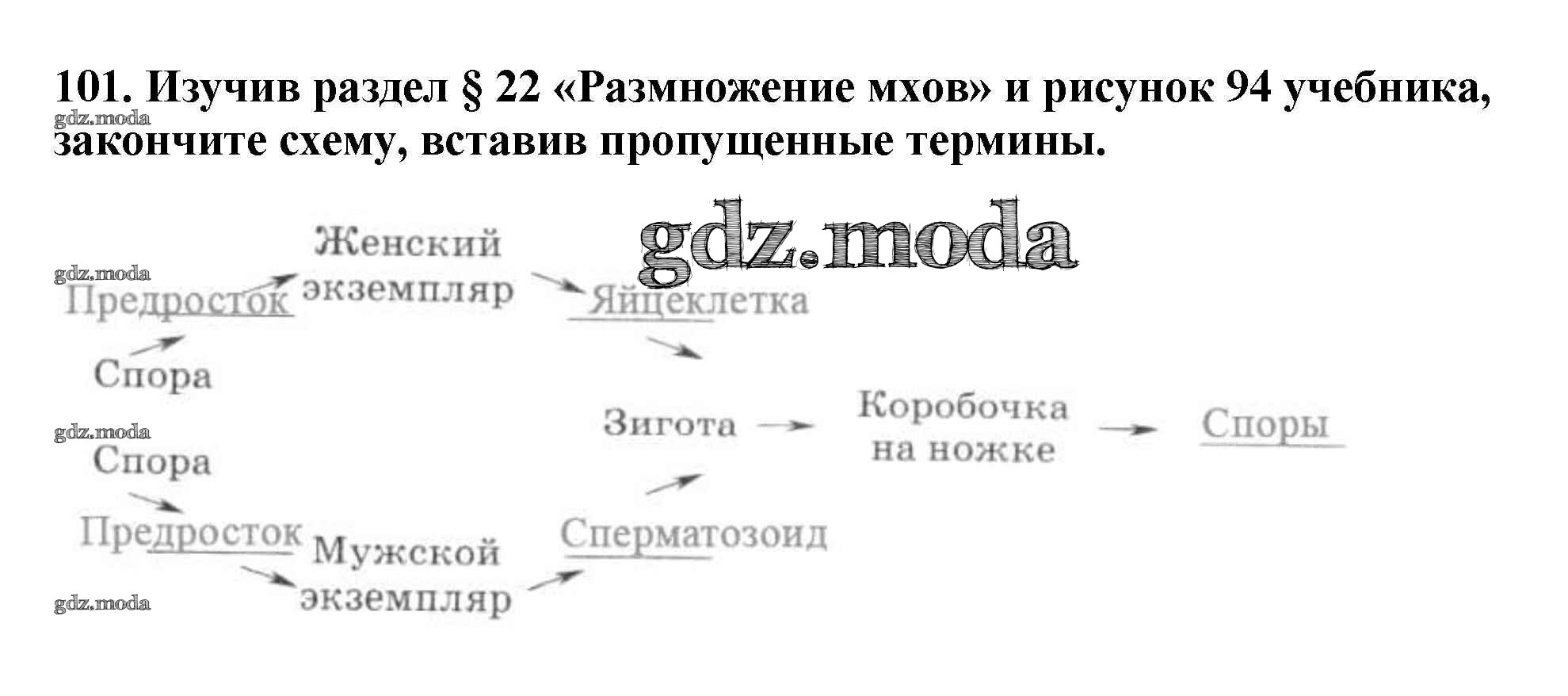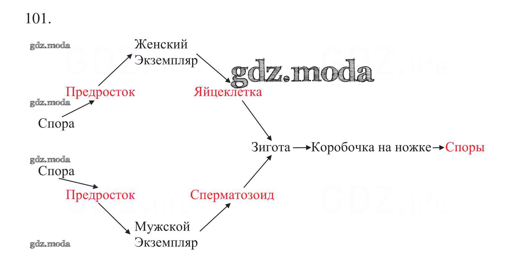 ОТВЕТ на задание № 101 Рабочая тетрадь по Биологии 6 класс Пасечник УМК