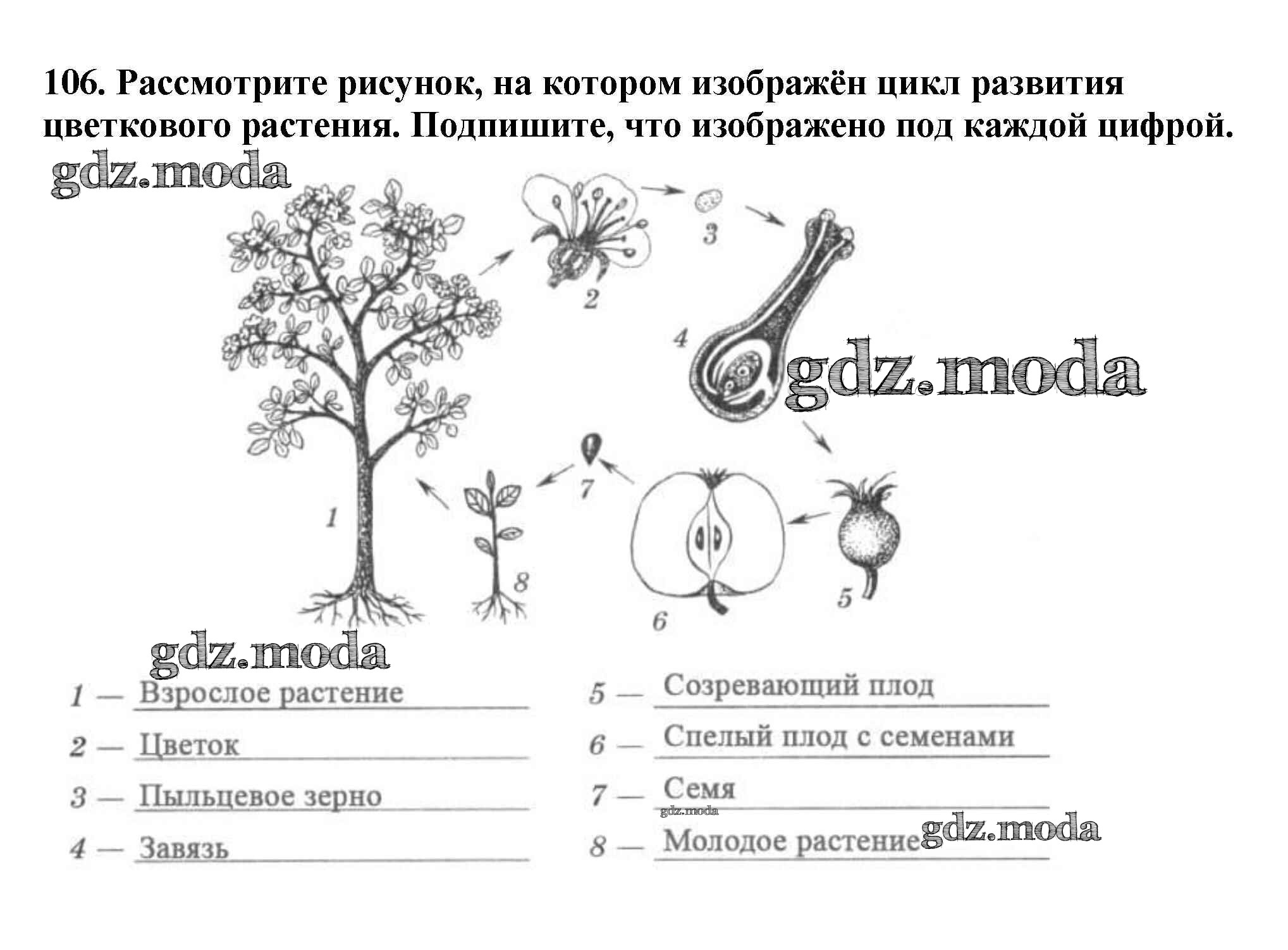 ОТВЕТ на задание № 106 Рабочая тетрадь по Биологии 6 класс Пасечник УМК