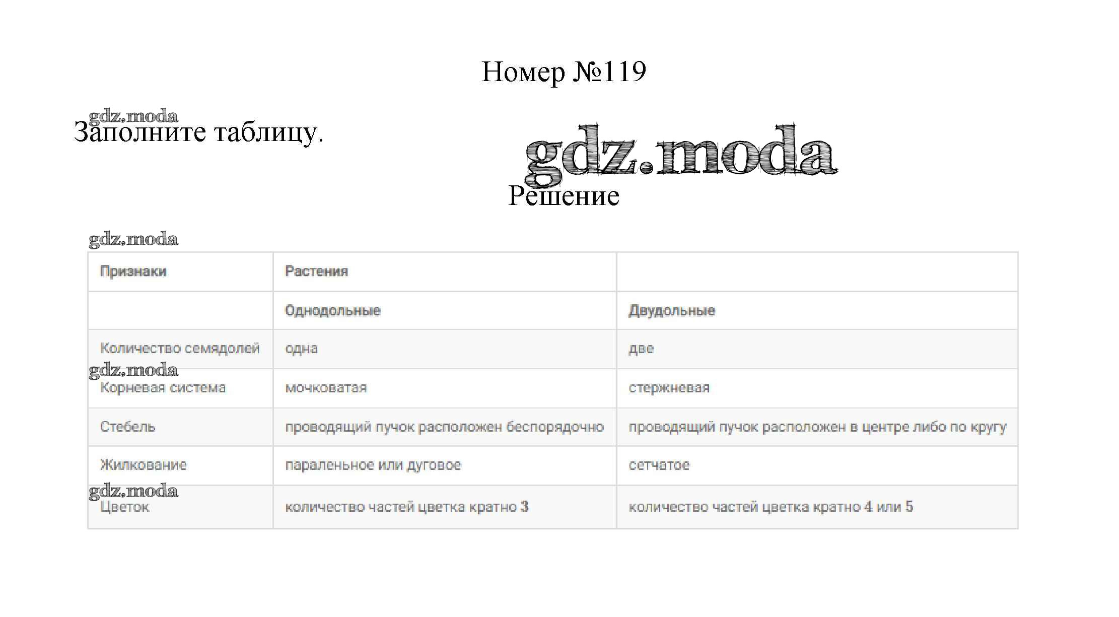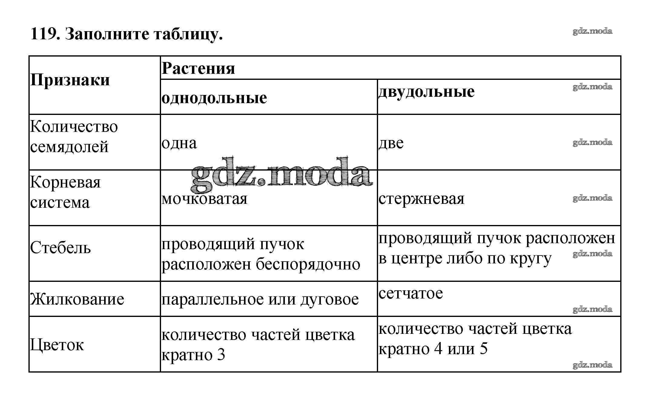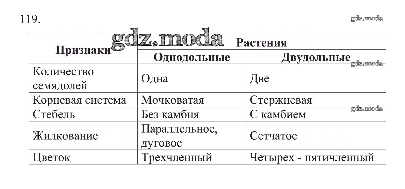 ОТВЕТ на задание № 119 Рабочая тетрадь по Биологии 6 класс Пасечник УМК