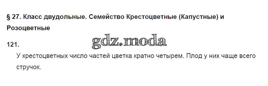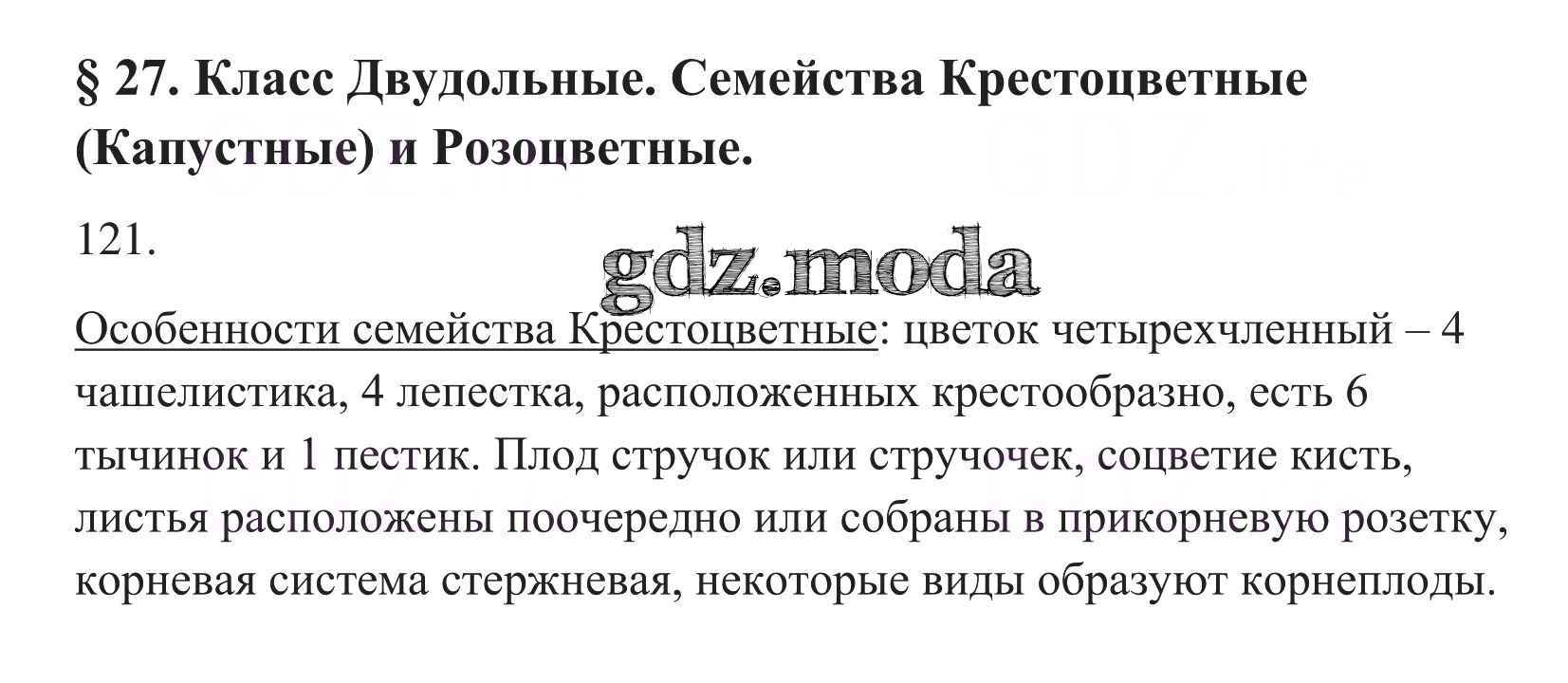 ОТВЕТ на задание № 121 Рабочая тетрадь по Биологии 6 класс Пасечник УМК