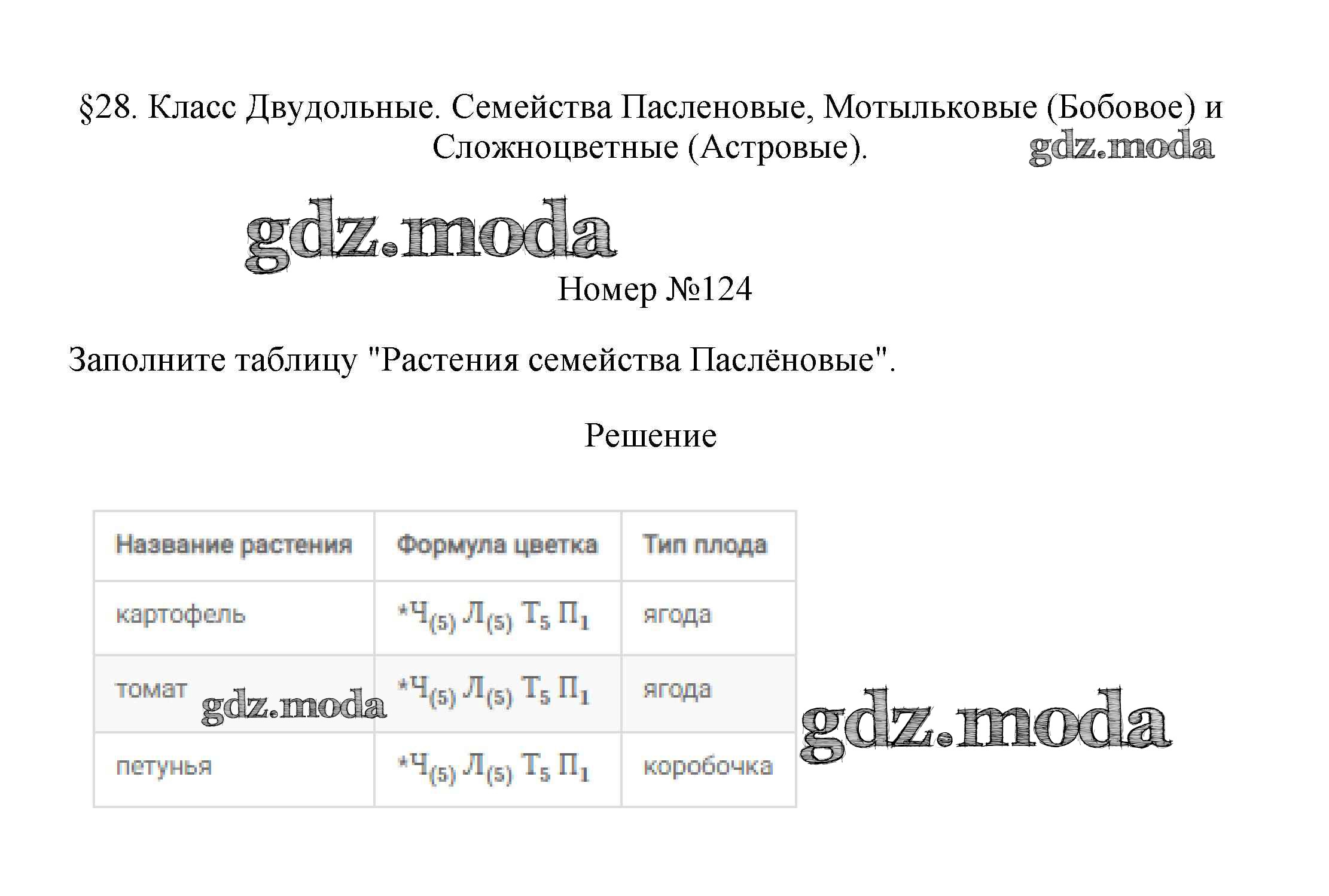 ОТВЕТ на задание № 124 Рабочая тетрадь по Биологии 6 класс Пасечник УМК
