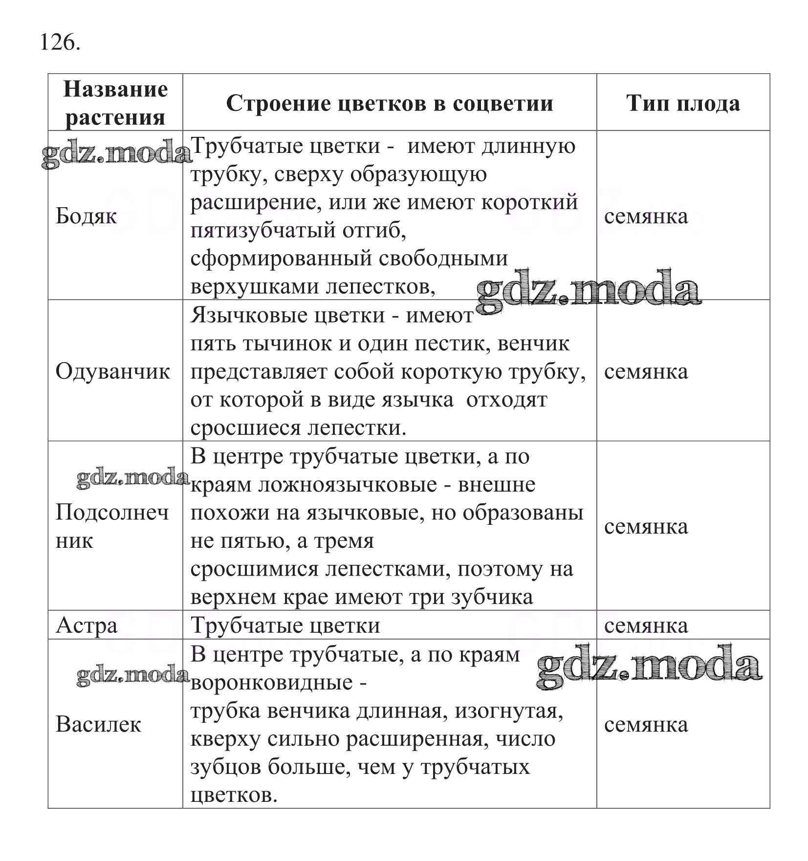 ОТВЕТ на задание № 126 Рабочая тетрадь по Биологии 6 класс Пасечник УМК